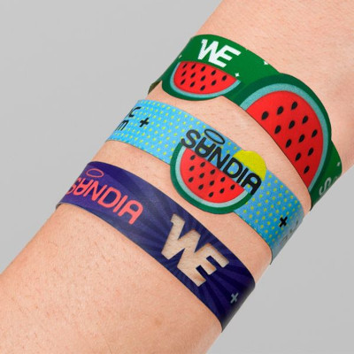 La impresión se realiza sobre tela blanca mediante la técnica de sublimación consiguiendo diseños vivos, definidos y de gran calidad. Esta técnica facilita la incorporación de logotipos, gráficos o ilustraciones con gran precisión, creando pulseras totalmente personalizadas.